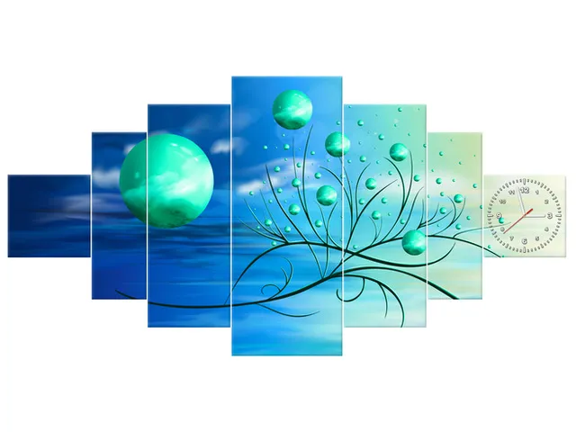 Úvod » Obrazy » Obrazy s hodinami » Obraz s hodinami Zelené gule v prameňoch ranného slnka