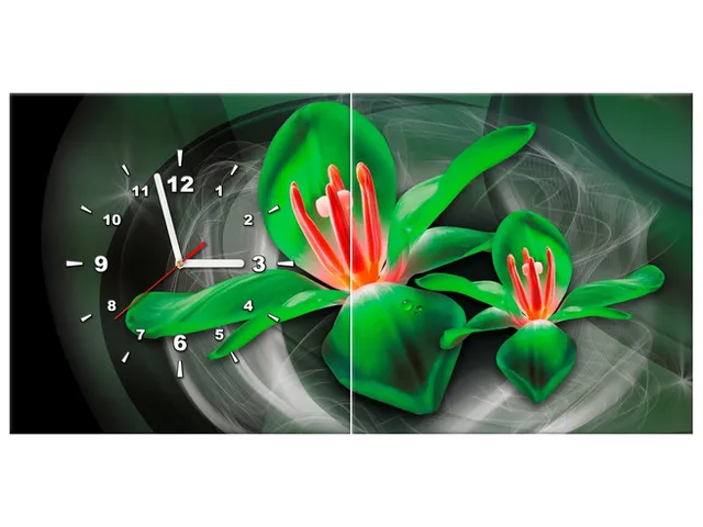 Úvod » Obrazy » Obrazy s hodinami » Obraz s hodinami Zelené kozmické kvety - Jakub Banas