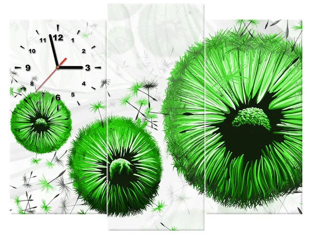 Úvod » Obrazy » Obrazy s hodinami » Obraz s hodinami Zelené púpavy