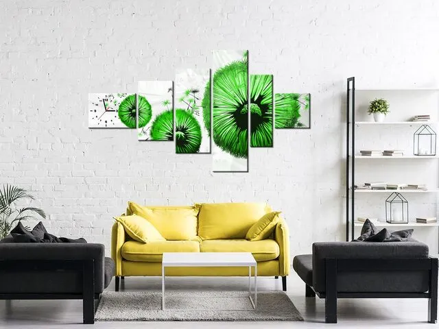 Úvod » Obrazy » Obrazy s hodinami » Obraz s hodinami Zelené púpavy