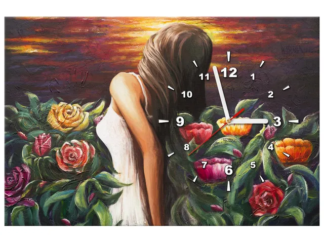 Úvod » Obrazy » Obrazy s hodinami » Obraz s hodinami Žena uprostred kvetov