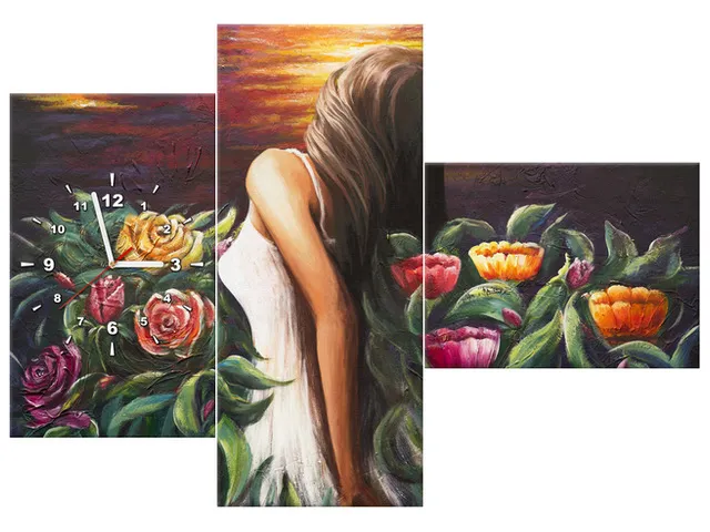 Úvod » Obrazy » Obrazy s hodinami » Obraz s hodinami Žena uprostred kvetov