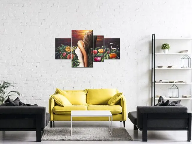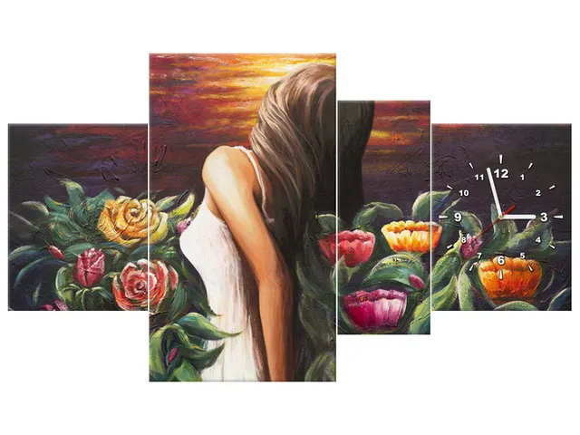 Úvod » Obrazy » Obrazy s hodinami » Obraz s hodinami Žena uprostred kvetov