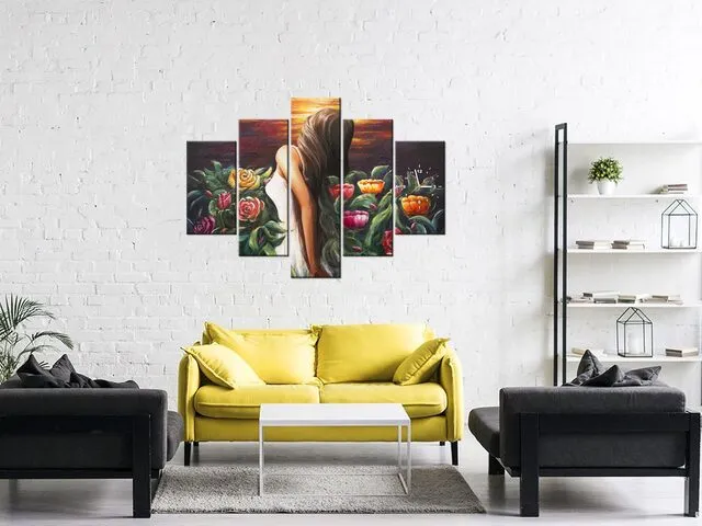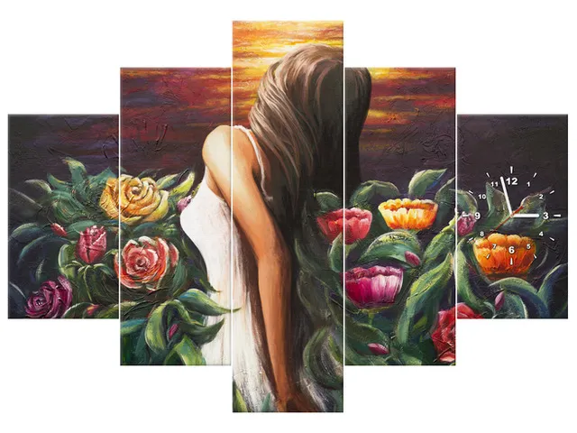 Úvod » Obrazy » Obrazy s hodinami » Obraz s hodinami Žena uprostred kvetov