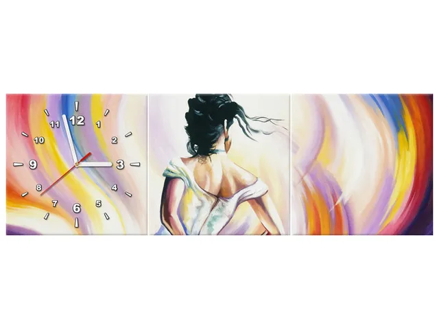 Úvod » Obrazy » Obrazy s hodinami » Abstrakt » Obraz s hodinami Žena vo víre farieb