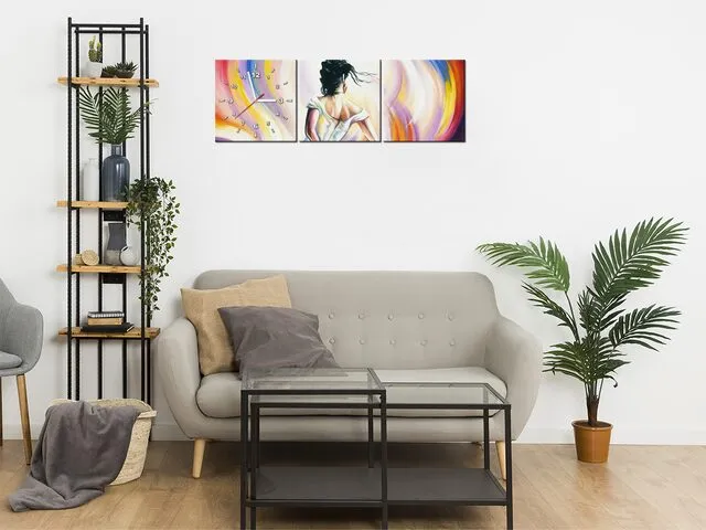 ZP4680A_3AX Obraz s hodinami Žena vo víre farieb |