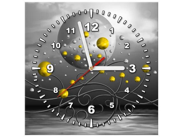 ZP5593A_3AX Obraz s hodinami Žlté gule na sivom pozadí |