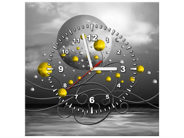 Barion Pixel Obraz s hodinami Žlté gule na sivom pozadí