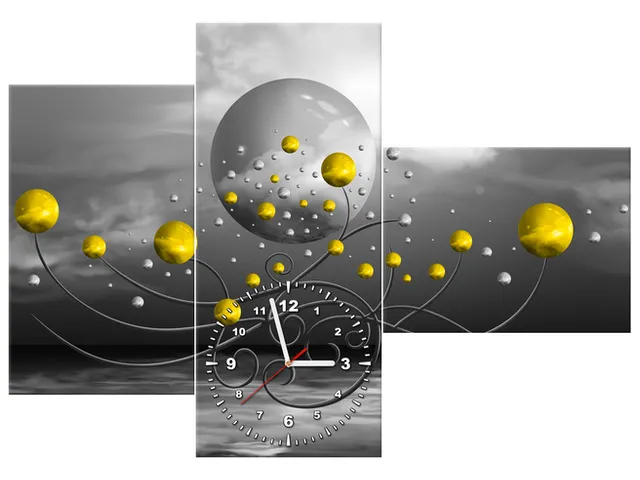 ZP5593A_3AX Obraz s hodinami Žlté gule na sivom pozadí |