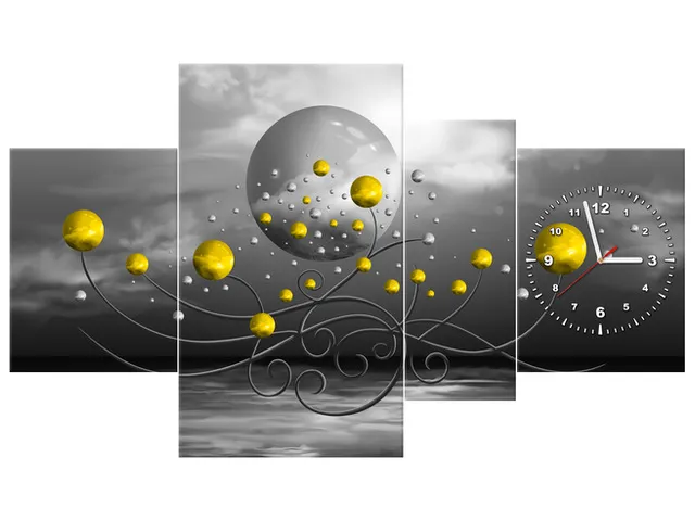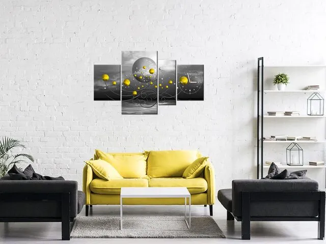 ZP5593A_3AX Obraz s hodinami Žlté gule na sivom pozadí |