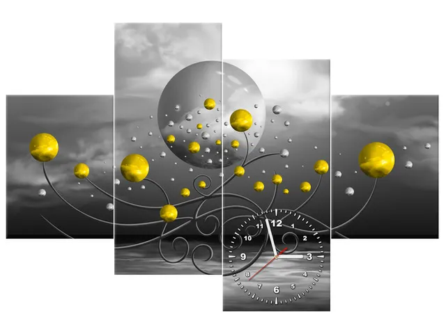 Úvod » Obrazy » Obrazy s hodinami » Príroda » Obraz s hodinami Žlté gule na sivom pozadí