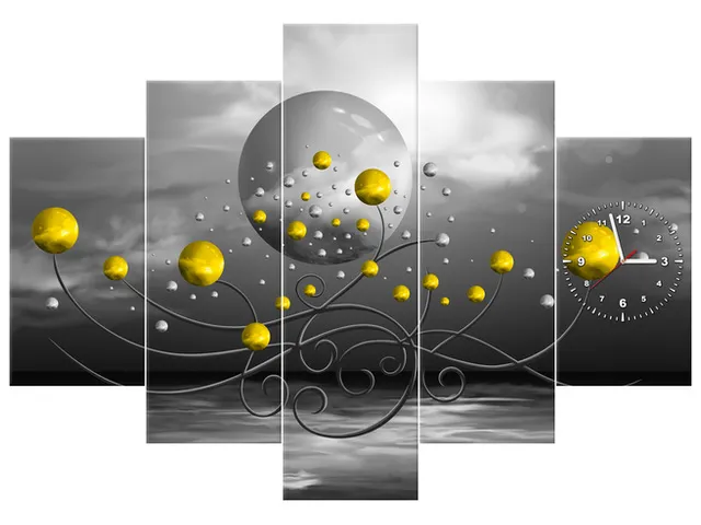 ZP5593A_3AX Obraz s hodinami Žlté gule na sivom pozadí |