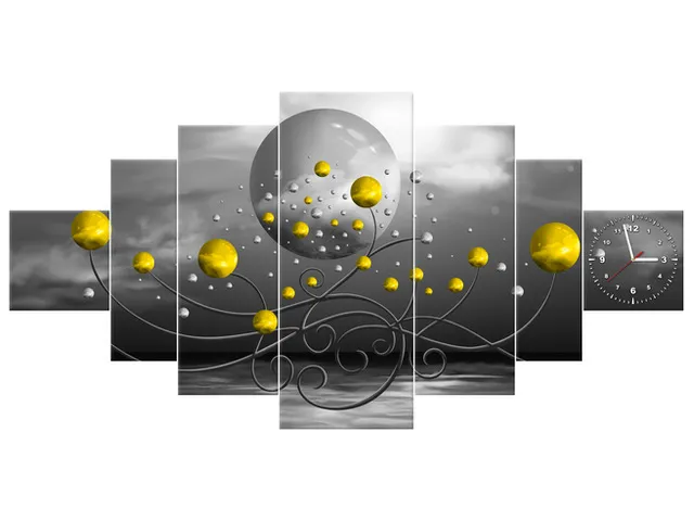 Úvod » Obrazy » Obrazy s hodinami » Príroda » Obraz s hodinami Žlté gule na sivom pozadí