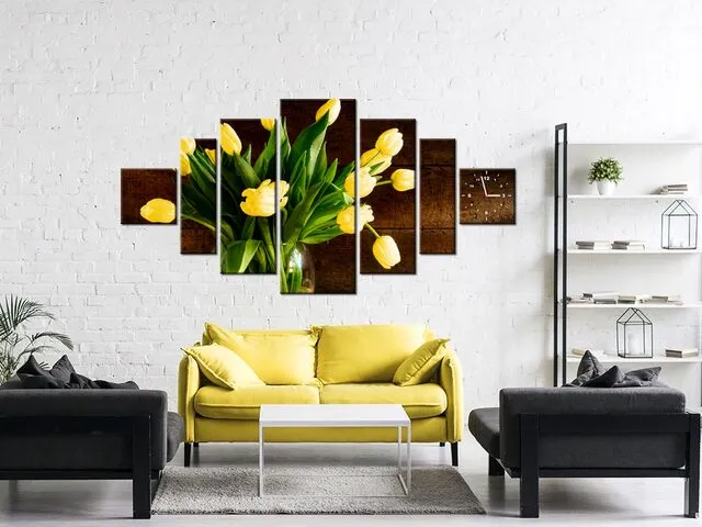Úvod » Obrazy » Obrazy s hodinami » Obraz s hodinami Žlté tulipány