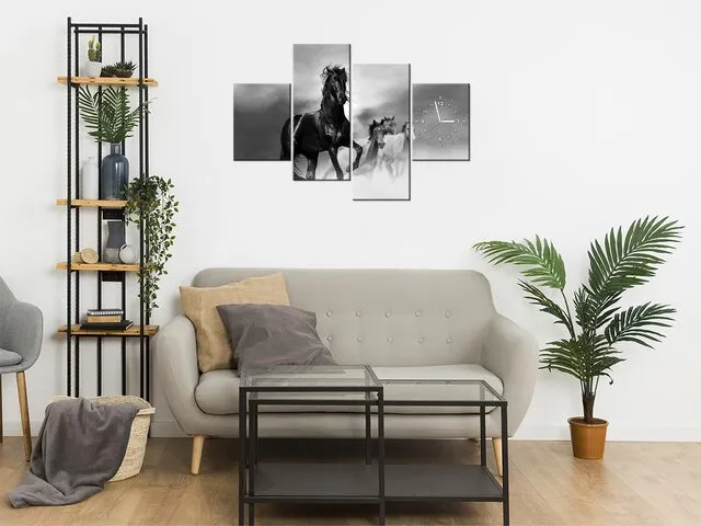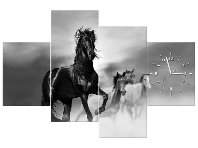 Úvod » Obrazy » Obrazy s hodinami » Obraz s hodinami do chodby Čierny kôň