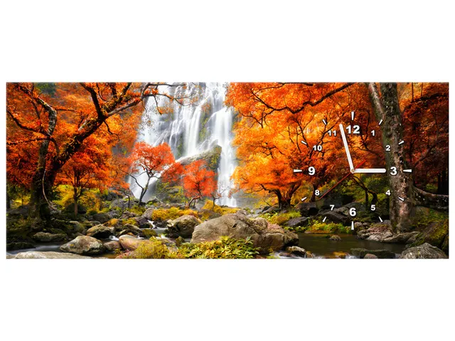 ZP2335A_3A Obraz s hodinami do chodby Jesenný vodopád |
