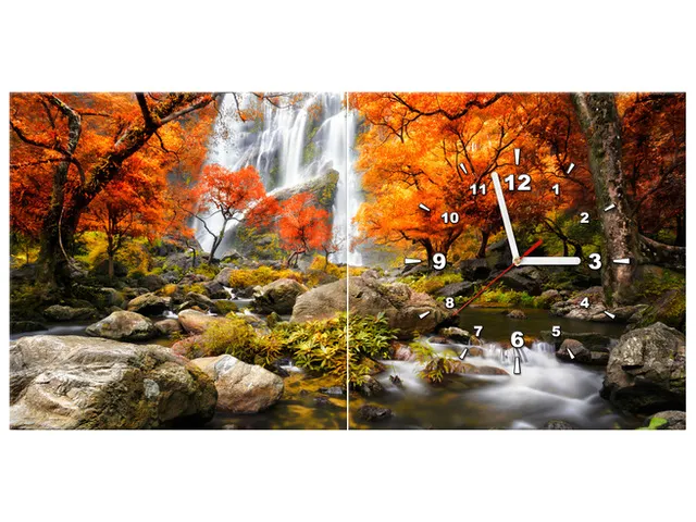 Úvod » Obrazy » Obrazy s hodinami » Obraz s hodinami do chodby Jesenný vodopád