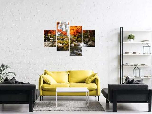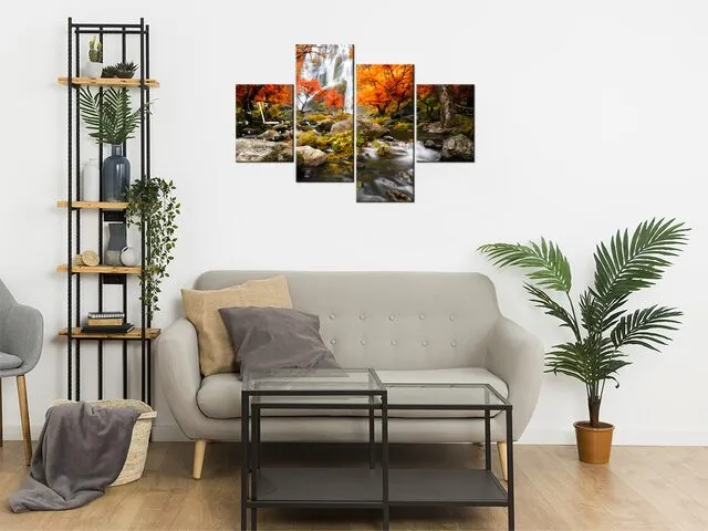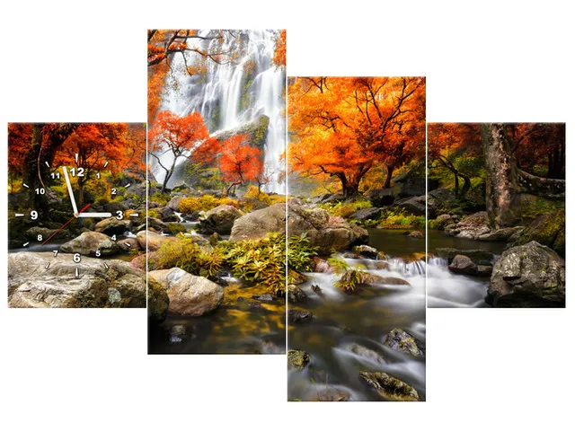 Úvod » Obrazy » Obrazy s hodinami » Obraz s hodinami do chodby Jesenný vodopád