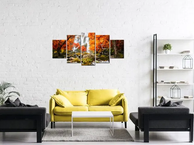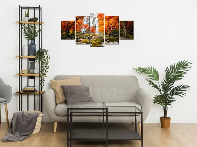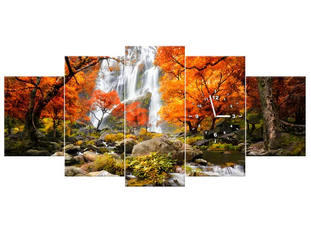 Úvod » Obrazy » Obrazy s hodinami » Obraz s hodinami do chodby Jesenný vodopád