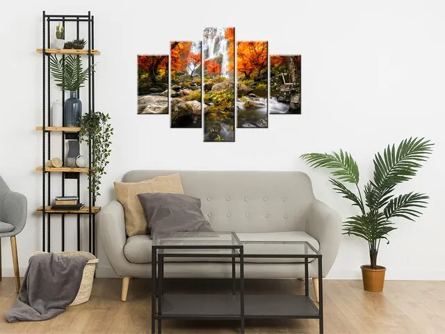 Úvod » Obrazy » Obrazy s hodinami » Obraz s hodinami do chodby Jesenný vodopád