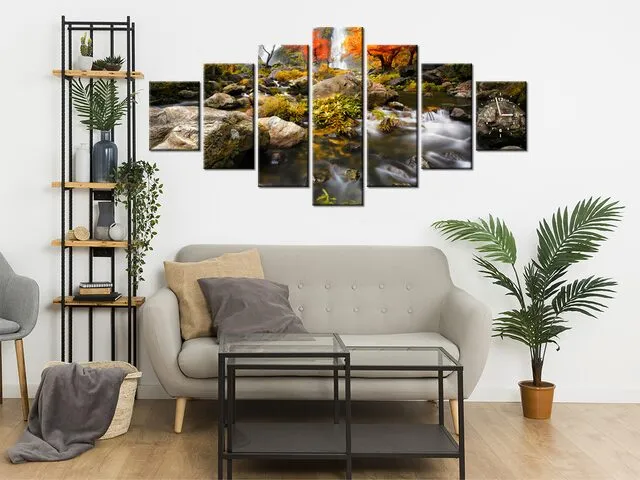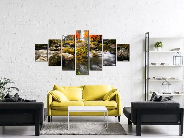 Úvod » Obrazy » Obrazy s hodinami » Obraz s hodinami do chodby Jesenný vodopád