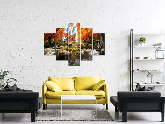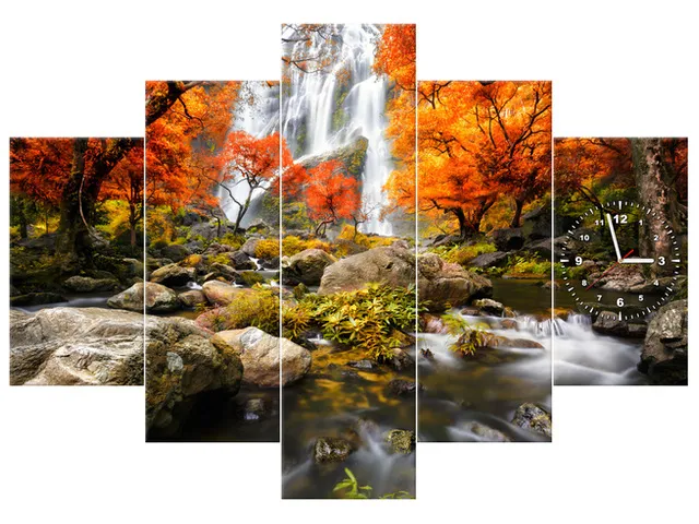 Úvod » Obrazy » Obrazy s hodinami » Obraz s hodinami do chodby Jesenný vodopád