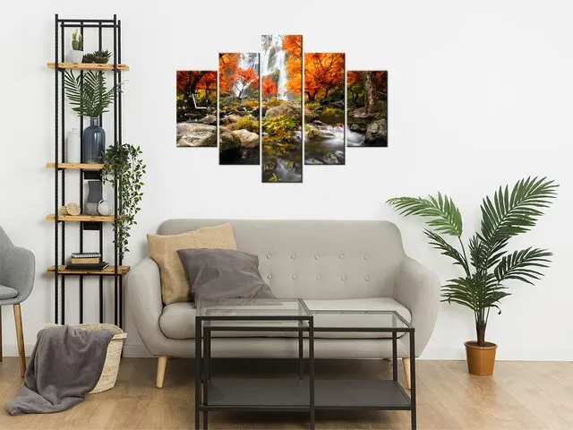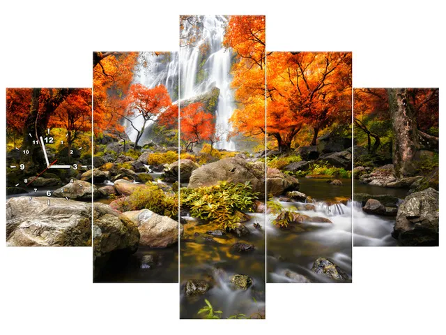 Úvod » Obrazy » Obrazy s hodinami » Obraz s hodinami do chodby Jesenný vodopád