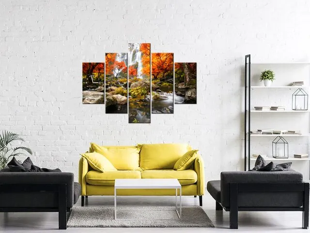 ZP2335C_5H Obraz s hodinami do chodby Jesenný vodopád |