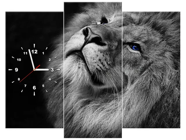 Úvod » Obrazy » Obrazy s hodinami » Obraz s hodinami do chodby Strieborný lev s modrými očami