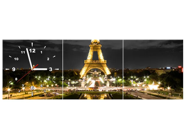Úvod » Obrazy » Obrazy s hodinami » Obraz s hodinami do chodby Večerná fotka Eiffelovky