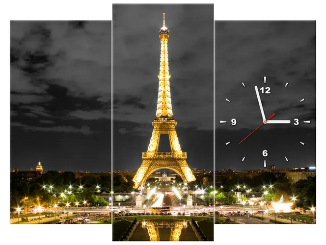 Úvod » Obrazy » Obrazy s hodinami » Obraz s hodinami do chodby Večerná fotka Eiffelovky