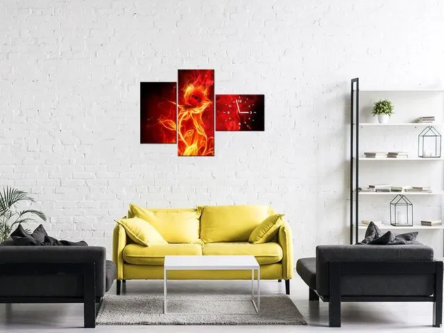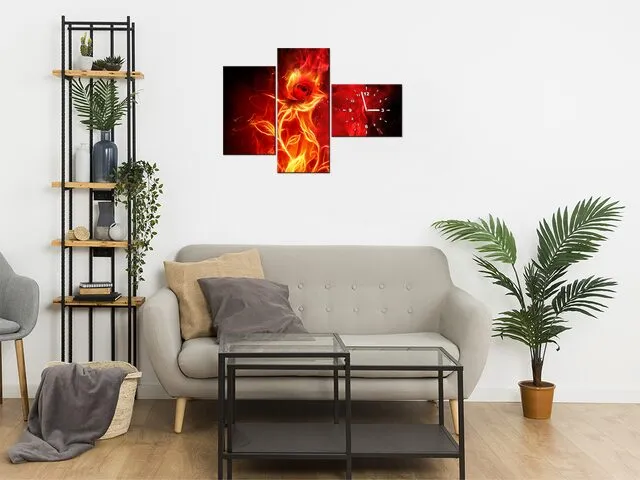 Barion Pixel Obraz s hodinami do obývačky Plamenistá ruža