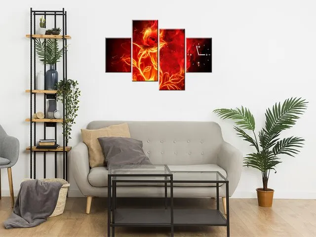 Barion Pixel Obraz s hodinami do obývačky Plamenistá ruža