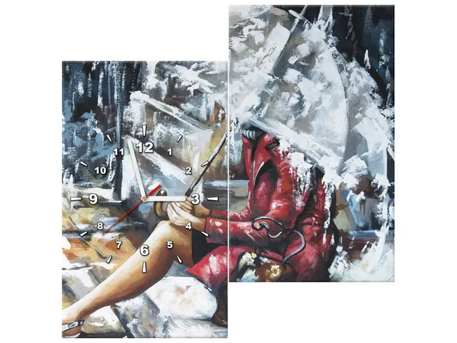Úvod » Obrazy » Obrazy s hodinami » Obraz s hodinami na plátne Dievča v daždi