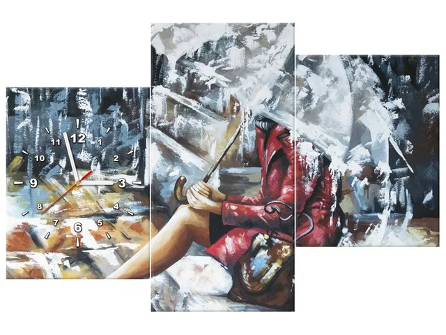 Úvod » Obrazy » Obrazy s hodinami » Obraz s hodinami na plátne Dievča v daždi
