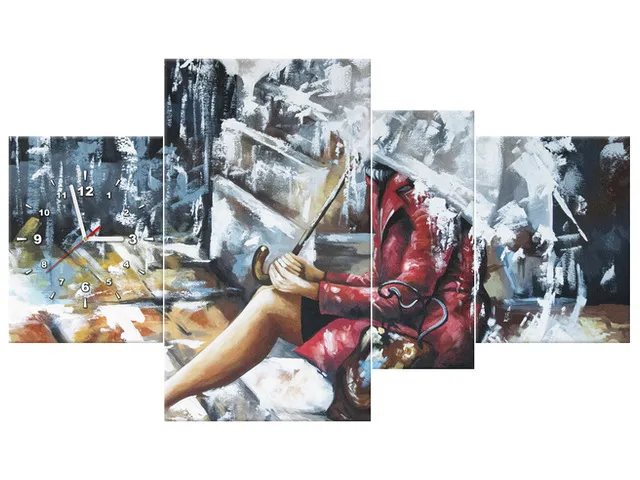 Úvod » Obrazy » Obrazy s hodinami » Obraz s hodinami na plátne Dievča v daždi