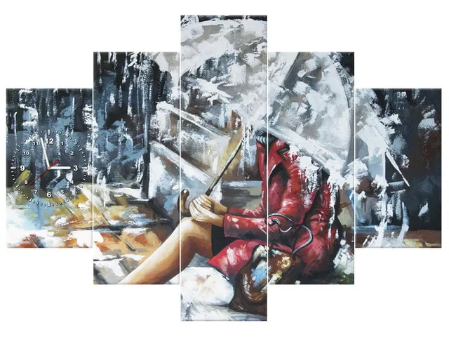 Úvod » Obrazy » Obrazy s hodinami » Obraz s hodinami na plátne Dievča v daždi