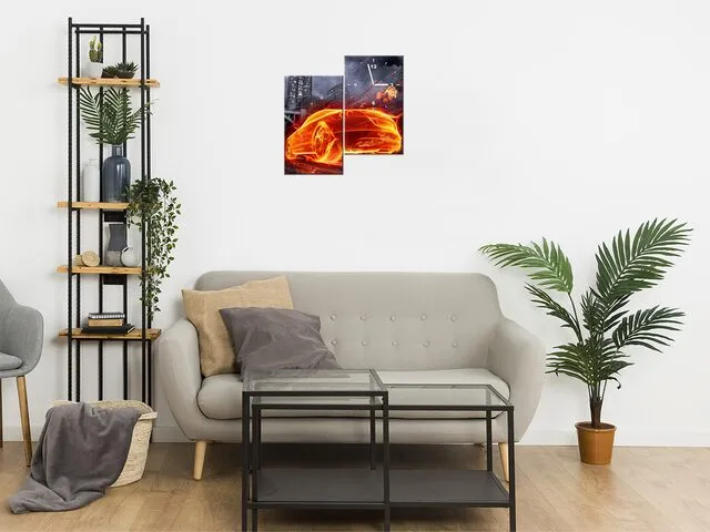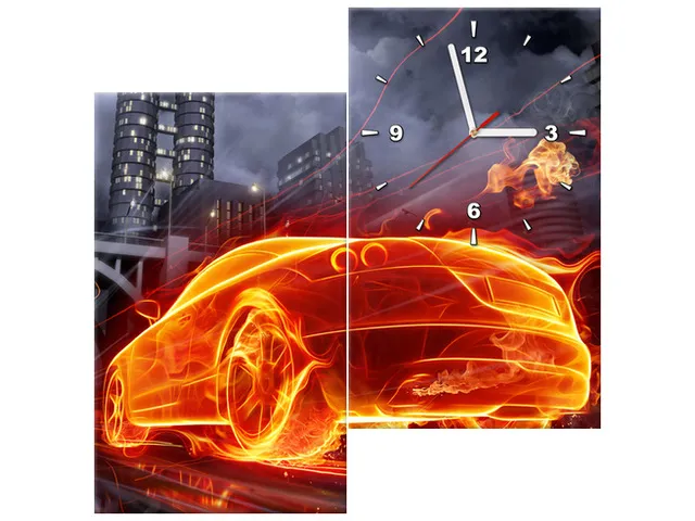 Úvod » Obrazy » Obrazy s hodinami » Obraz s hodinami na plátne Horiace auto