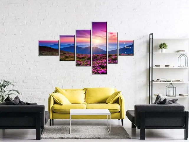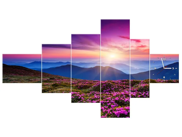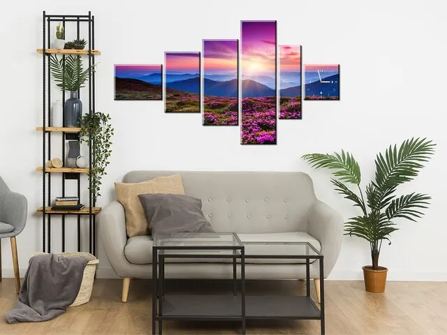 Obraz s hodinami na plátne Horská lúka