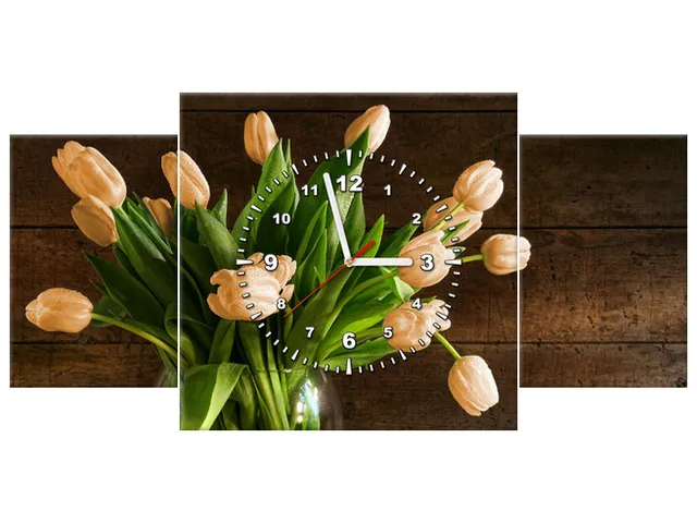 ZP2151A_3K Obraz s hodinami na plátne Hrdzavé tulipány |