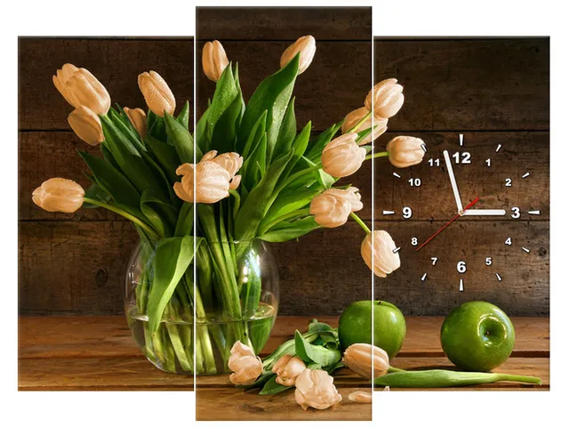 Úvod » Obrazy » Obrazy s hodinami » Obraz s hodinami na plátne Hrdzavé tulipány