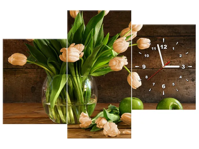 Úvod » Obrazy » Obrazy s hodinami » Obraz s hodinami na plátne Hrdzavé tulipány