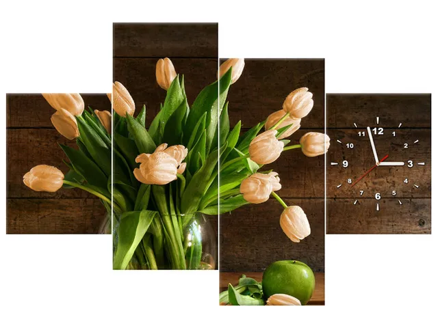 Úvod » Obrazy » Obrazy s hodinami » Obraz s hodinami na plátne Hrdzavé tulipány