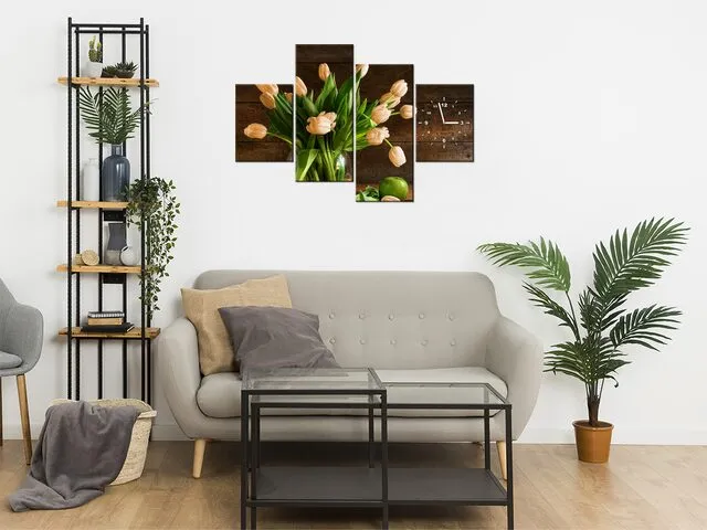 Barion Pixel Obraz s hodinami na plátne Hrdzavé tulipány