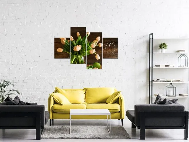 Obraz s hodinami na plátne Hrdzavé tulipány