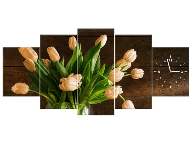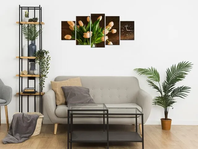 Úvod » Obrazy » Obrazy s hodinami » Obraz s hodinami na plátne Hrdzavé tulipány