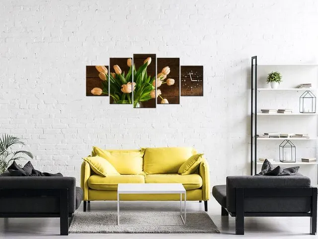 ZP2151A_5H Obraz s hodinami na plátne Hrdzavé tulipány |