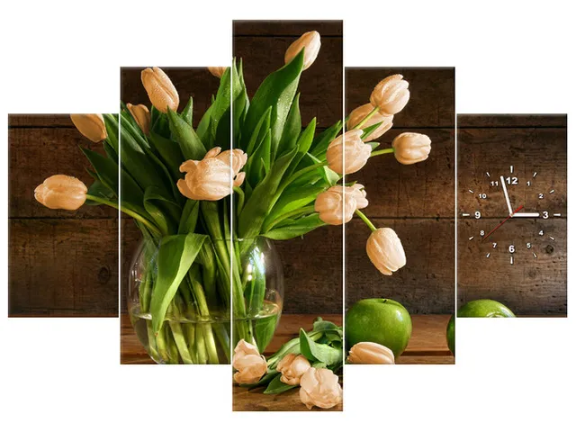 Úvod » Obrazy » Obrazy s hodinami » Obraz s hodinami na plátne Hrdzavé tulipány