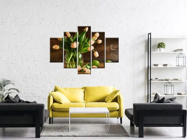 Obraz s hodinami na plátne Hrdzavé tulipány