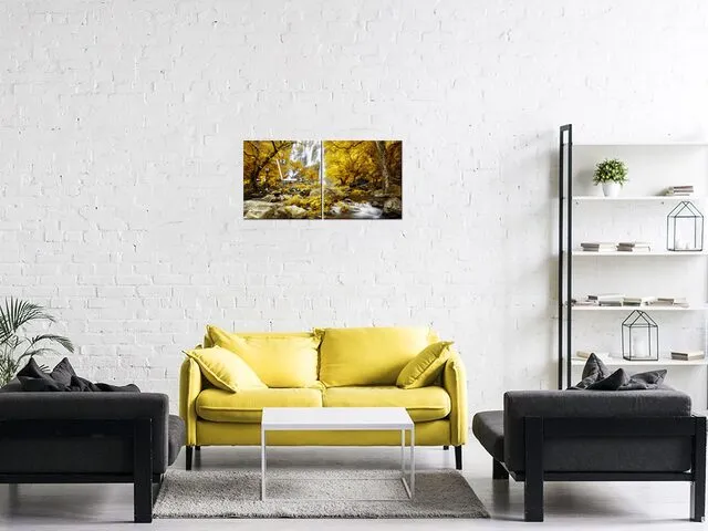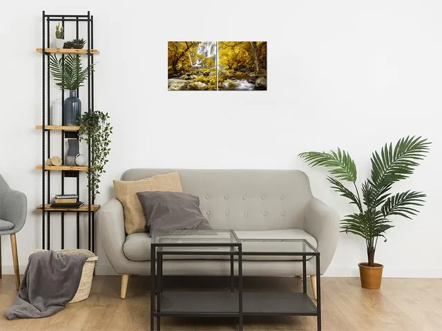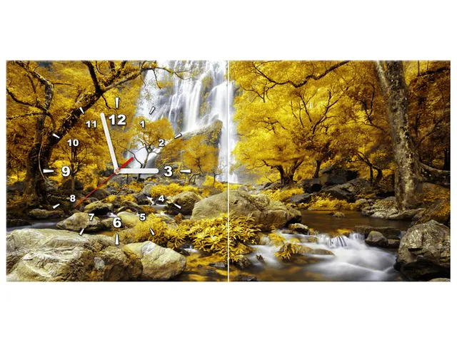Úvod » Obrazy » Obrazy s hodinami » Obraz s hodinami na plátne Jesenný vodopád